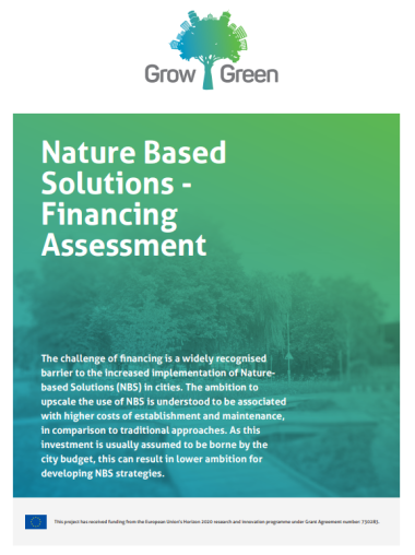 Image: GrowGreen Factsheet - Nature Based Solutions Financing Assessment The GrowGreen Factsheet proposes a series of steps to effectively plan the financing of NbS Strategies in cities. The process starts by clearly ide...